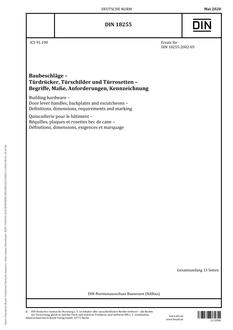 DIN 18255 – Building hardware – Door lever handles, backplates and escutcheons – Definitions, dimensions, requirements and marking