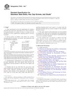 1.1 This specification covers the requirements for stainless steel bolts, hex cap screws, and studs 0.25 to 1.50 in., inclusive, in nominal diameter in a number of alloys in common use and intended for service applications requiring general corrosion resistance.